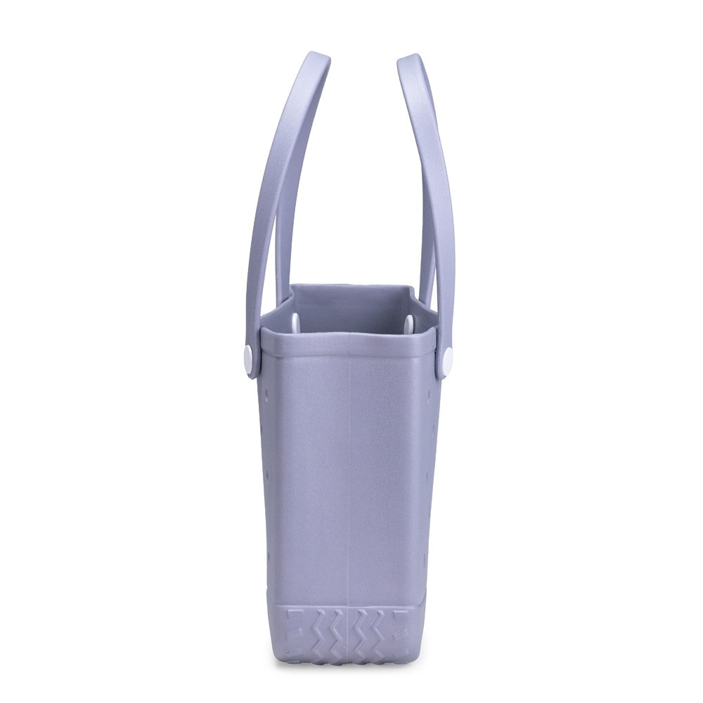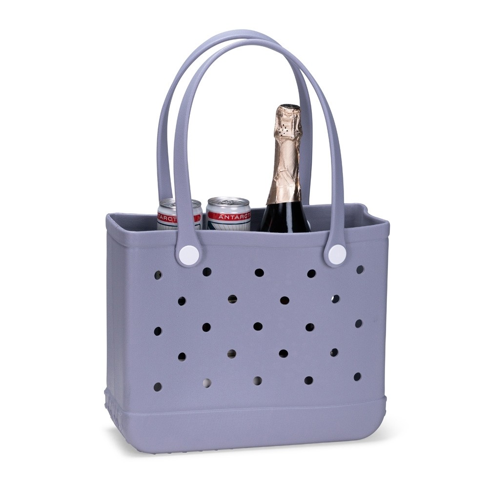 : Bolsa em EVA ecológico resistente à água e de fácil limpeza. Conta com furos para ventilação e dispersão de resíduos líquidos ou grãos de areia e terra, além de textura antiderrapante na parte inferior e alças de mão fixadas à bolsa por botões em polipropileno (PP).