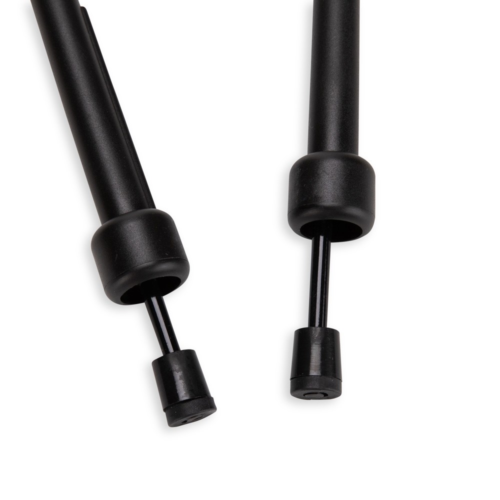 Corda de pular em PVC. Possui cabos em policloreto (PP) com estrutura que permite o ajuste do comprimento, podendo atingir extensão máxima de aproximadamente 2,5 metros.