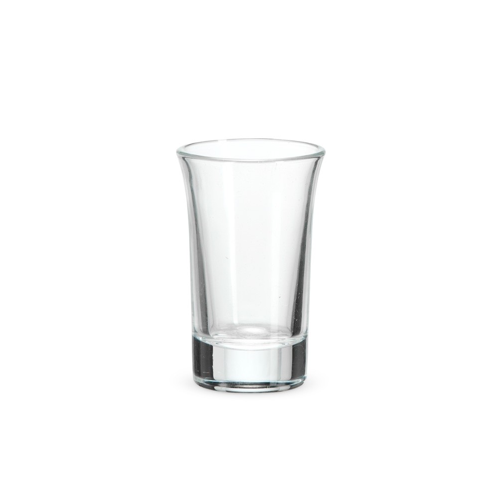 Kit com seis copos de vidro com capacidade máxima de 50ml cada.