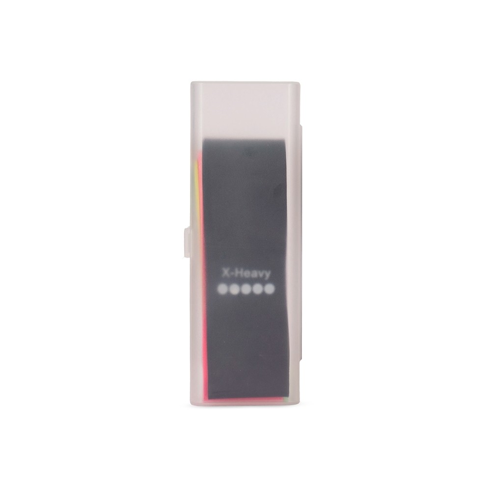 Kit com cinco faixas de borracha com diferentes níveis de resistência, oferecendo a elasticidade ideal para a prática de diversos tipos de atividades físicas. O conjunto acompanha um estojo plástico para guardar as faixas.