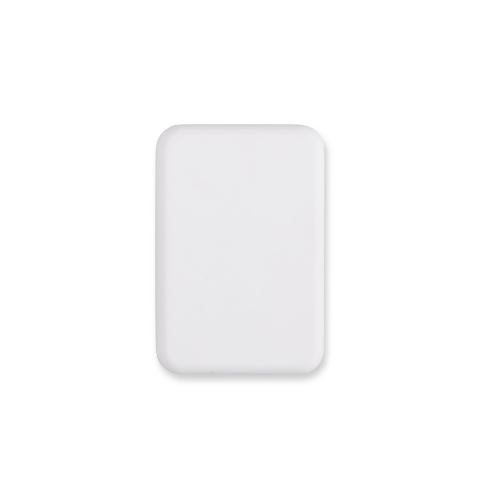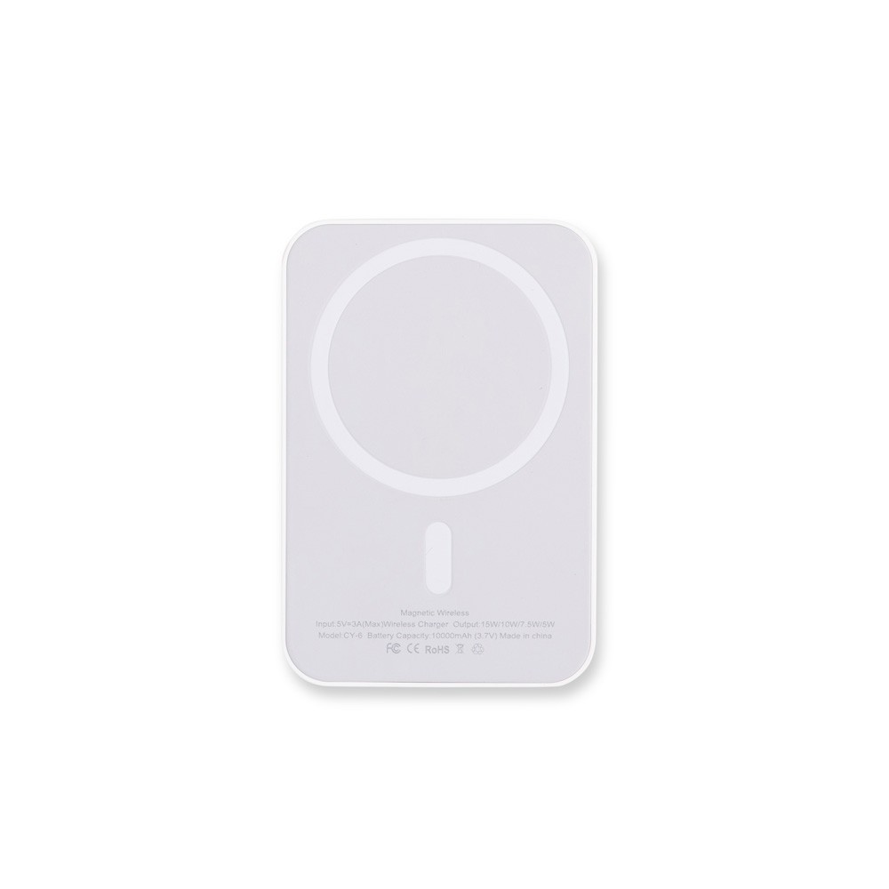 Power bank para carregamento de dispositivos compatíveis com a tecnologia de indução magnética, estrutura em plástico, entrada USB-C para alimentação e capacidade de até 10.000mAh.